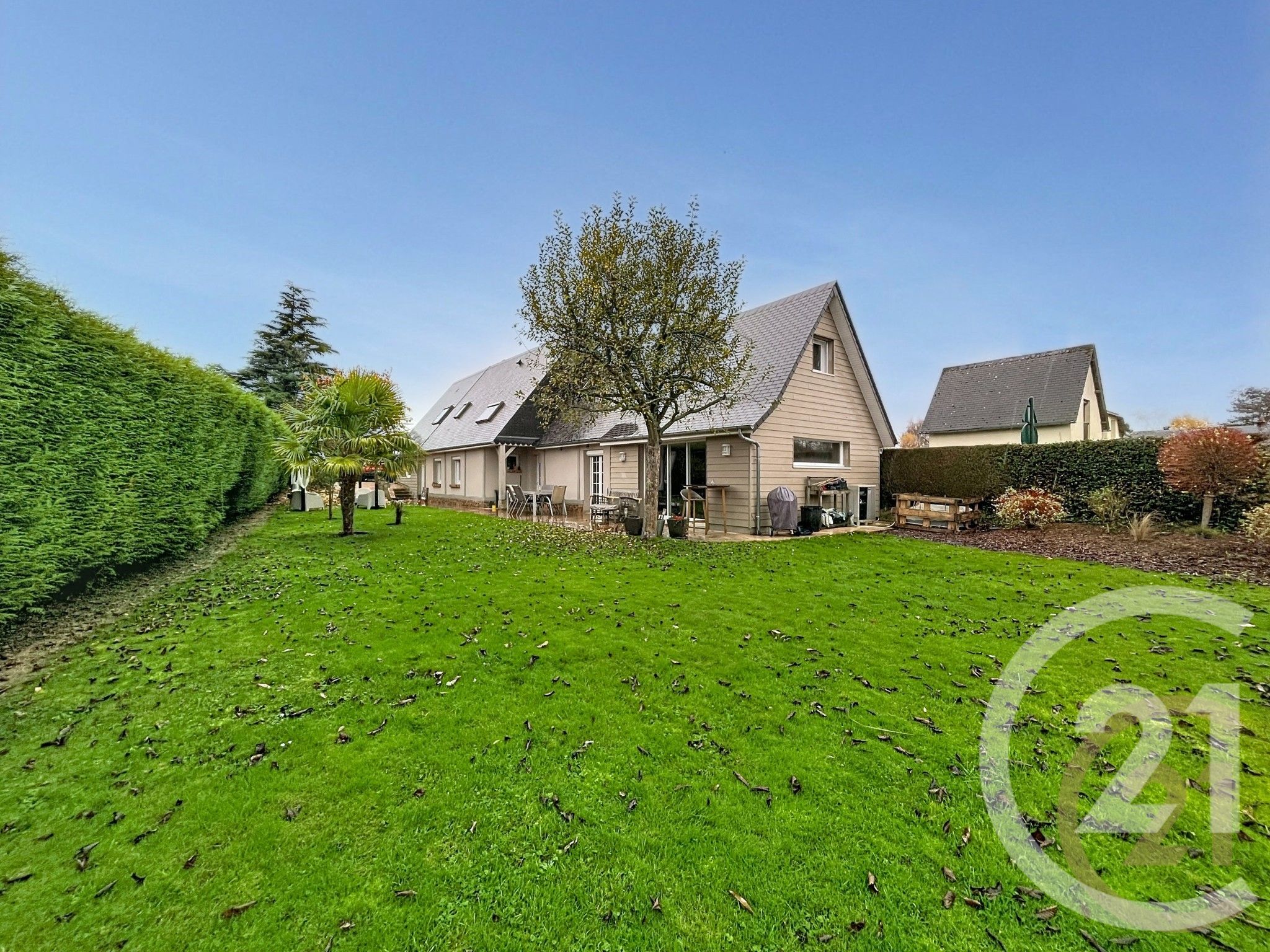À l'extérieur : un jardin arboré pour profiter des beaux jours vous garantit intimité et tranquillité, parfait pour les jeux des enfants ou vos moments de détente.